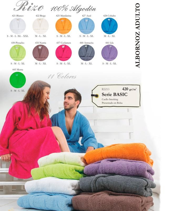 Albornoz de adulto Basic de la firma FIOTEX que garantiza una máxima calidad.