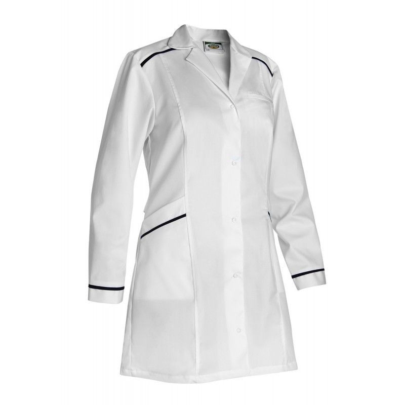 Bata sanitaria de mujer para trabajar que pertenece a la sofisticada marca MONZA, dirigida a todos aquellos profesionales que se dedican al mundo de la salud tales como clínicas, laboratorios, farmacias, ópticas, fisioterapeúticas, etc.