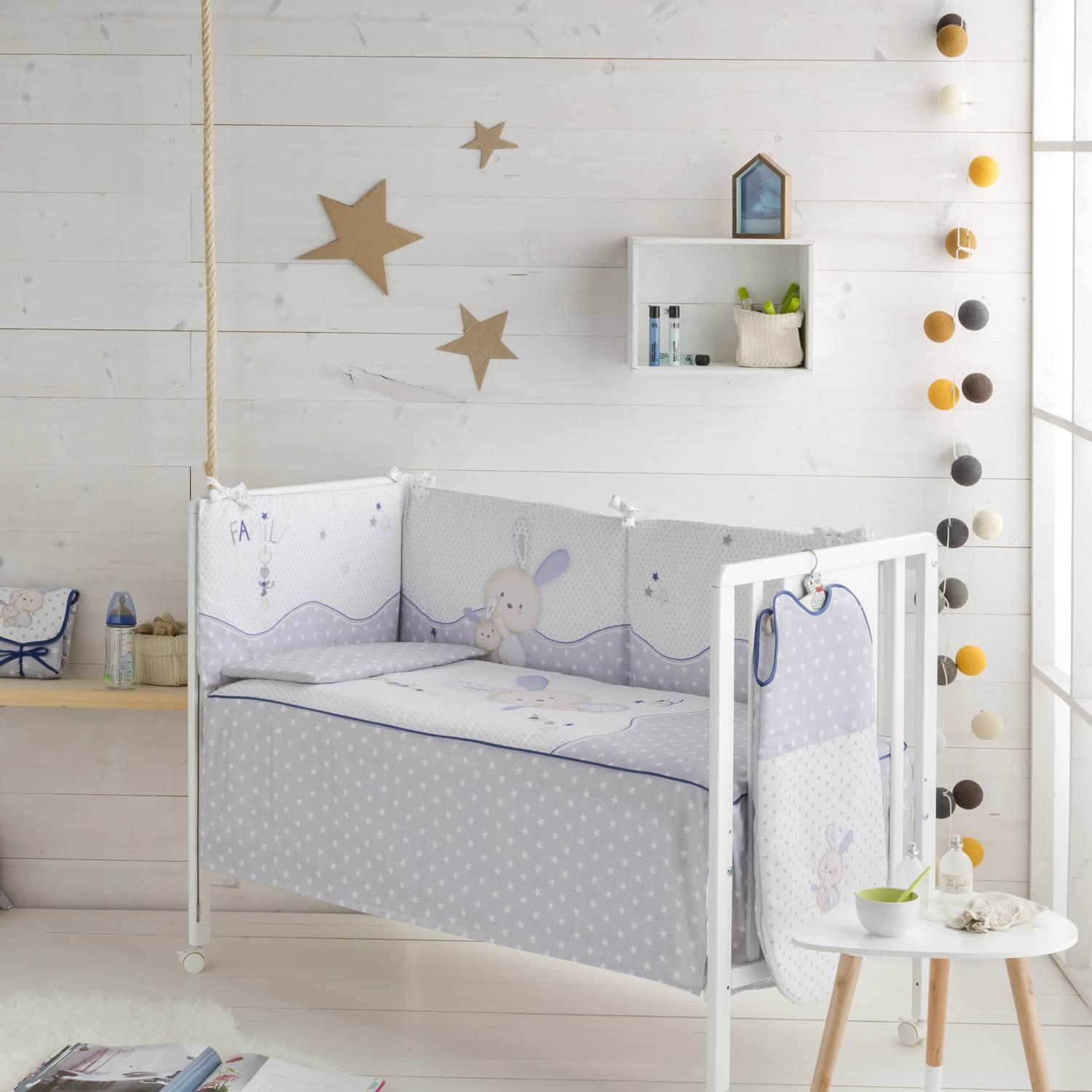 Maxicuna: disponible para maxicunas de 70 x 140 cm. y 80 x 140 cm. Incluye funda nórdica con relleno, almohada con relleno y chichonera de 45 x 228 x 3 cm. Desenfundable.