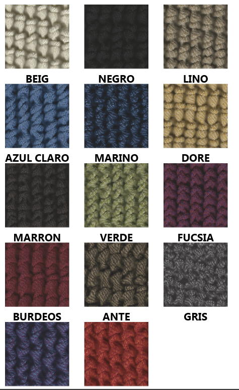 También disponible en sofa de 1, 2 ó 3 plazas, orejero, relax, relax pies juntos, chaise longue y clic clac.