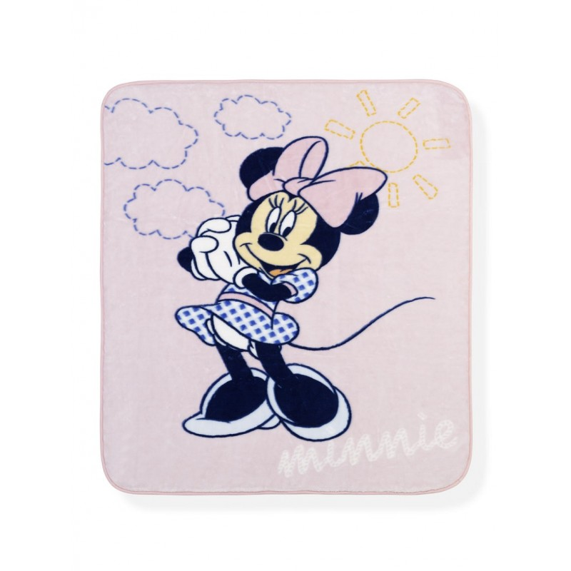 Manta raschel con acabado terciopelo extra suave estampada con los populares personajes de Disney, Mickey y Minnie.